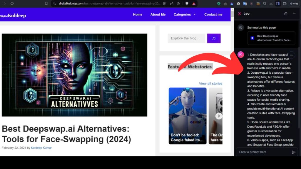 Ideal for: Brave browser users, those prioritizing privacy, anyone wanting a basic AI assistant integrated into their web browsing, and individuals seeking quick summaries of web-based content.