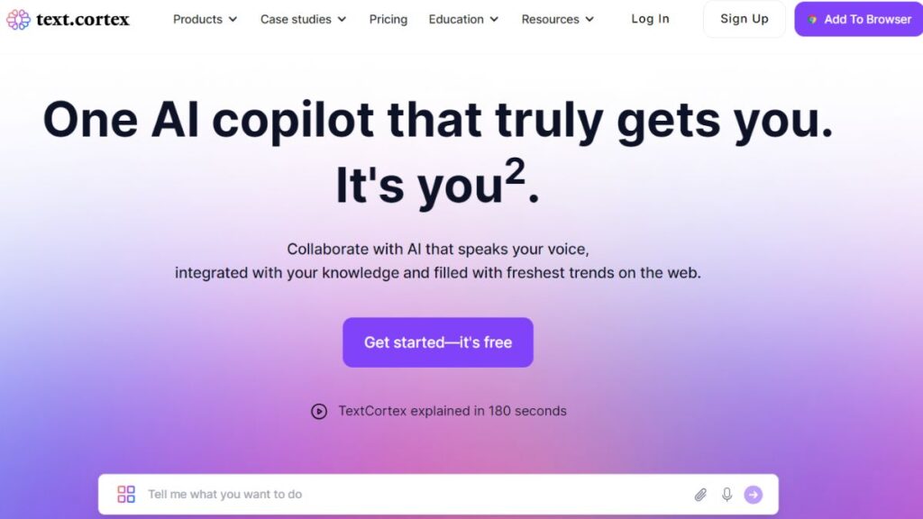 TextCortex offers a suite of AI writing tools designed to aid in content creation. It stands out with various templates, browser extensions, and its ability to be fine-tuned to your writing style.