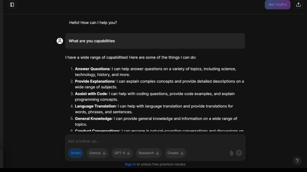 YouChat positions itself as an AI search assistant designed to augment and refine traditional search engine use. It blends web results with conversational AI summaries, aiming to save time and provide insights.