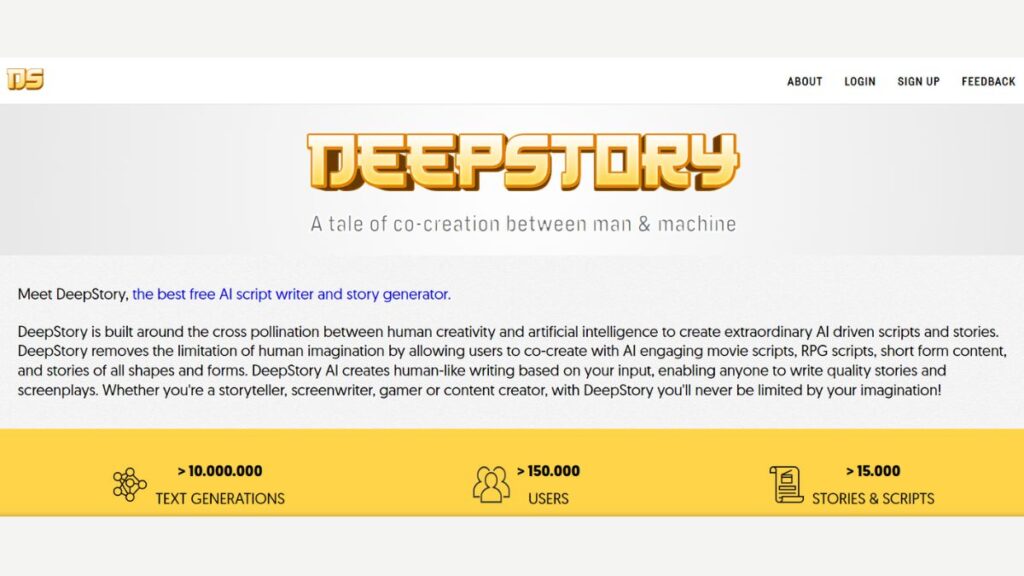 DeepStory specializes in generating short-form fiction, offering tools for analysis and feedback to help writers improve their work.
