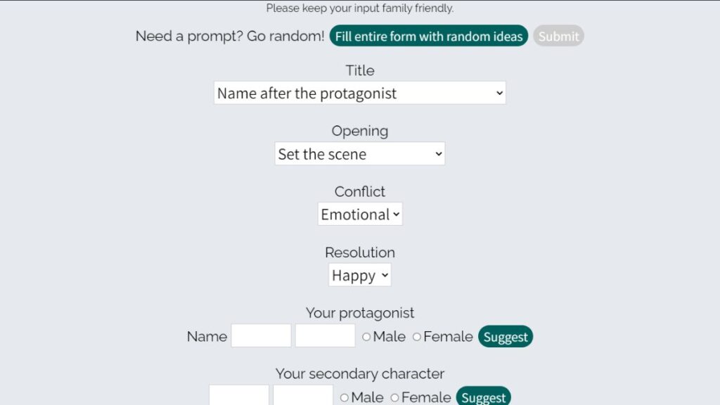 Ideal for: Writers needing a jolt of inspiration, those who want help brainstorming the building blocks of a story, or users looking to experiment with different genres and plot formats.